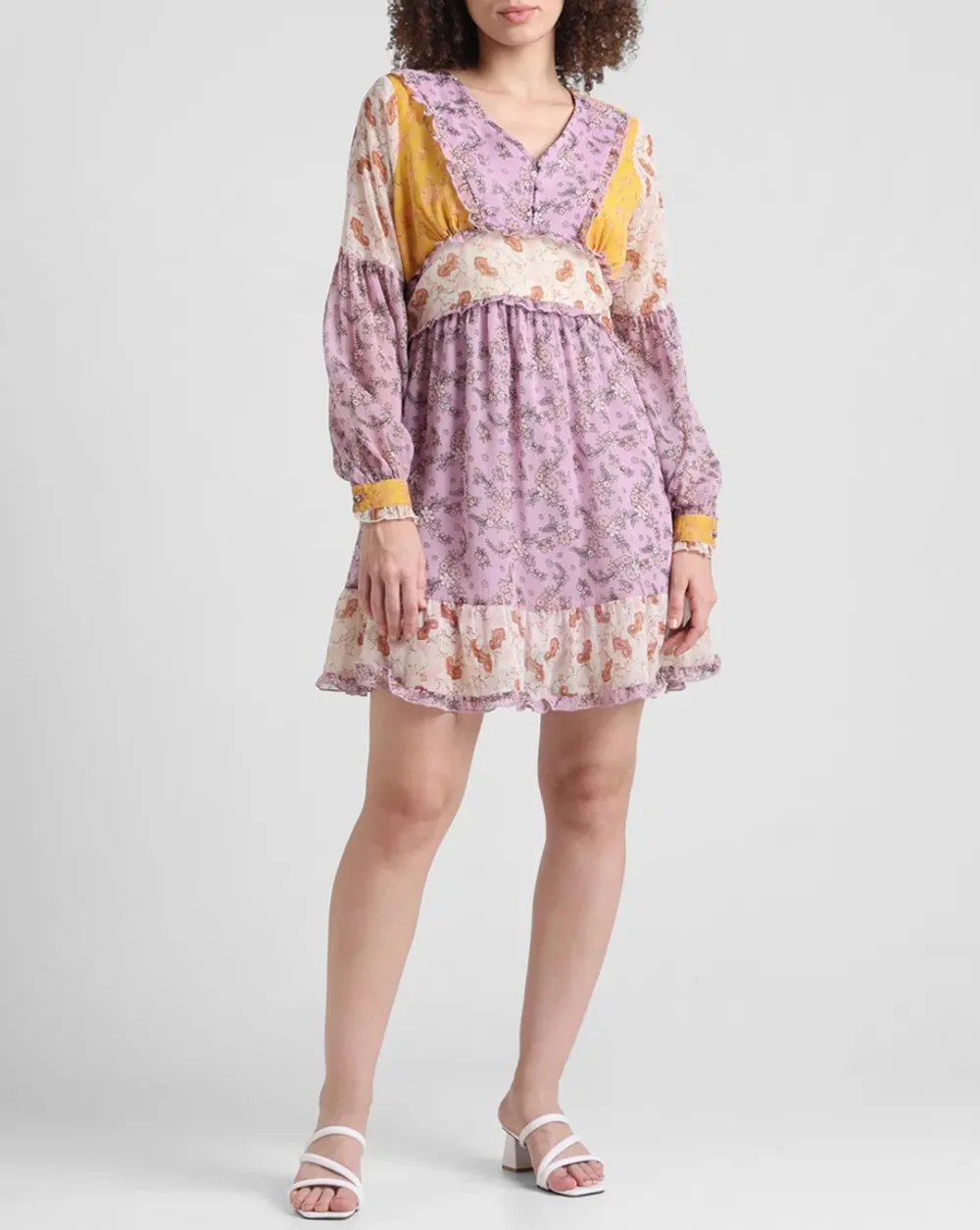 Lavender Floral Flounced Dress